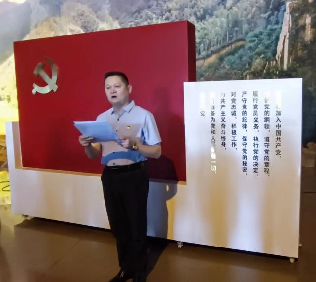 讲话结束后,,,,集团党委书记方晓强带领全体党员面对鲜红的党旗,,重温入党誓词,,,,“我志愿加入中国共产党,,,,拥护党的纲领,,遵守党的章程.......”,,铿锵有力、、、掷地有声的誓言表达了党员们奋斗的决心和承诺。。