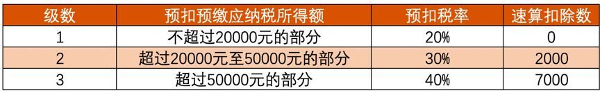 税收取之于民,,,,用之于民。。。依法纳税不仅仅是为了国家建设,,,更多的还是为了凯时尊龙老百姓自身。。那么,,凯时尊龙应该如何“估算”个人所得税??? 本文开始之前,,,先给大家解释两个重要概念。。。。其一,,,,应纳税所得额(你要交税的钱):应发工资减去社保、、、、公积金、、附加扣除、、、专项附加扣除等,,,剩下的就是你要交税那一部分的钱;其二,,,应纳所得税额(你实际交了多少税):应纳税所得额,,乘以对应税率,,,,所得的金额。。。 01工资、、薪金所得 工资、、、薪金所得,,,,适用七级超额累进税率。。。。每月工资应纳所得税额=应纳税所得额*预扣税率。。个人所得税预扣表如下: 案例:A每月应发工资为10000元,,“五险一金”等专项扣除1500元,,享受子女教育、、、、赡养老人两项专项附加扣除共计500元,,,每月减免收入及减免税额等情况。。那么如何“估算”个人所得税???? 应纳税所得额:10000-1500-500=8000元 应纳所得税额=累计预扣预缴应纳税所得额×预扣率-速算扣除数=8000*3%-0=240元 02年终奖所得 先将年终奖金总额除以12,,,,然后以每月平均收入金额来确定税率和速度扣除数。。。(注意:该税率表与工资、、、薪金所得税率表相同。。。) 03 劳务报酬所得 (1)取得劳务报酬时先计算个税所得应纳所得税额=累计预扣预缴应纳税所得额×预扣率-速算扣除数 (2)年末时将工资、、、、劳务报酬等合并起来计算个人所得税 |